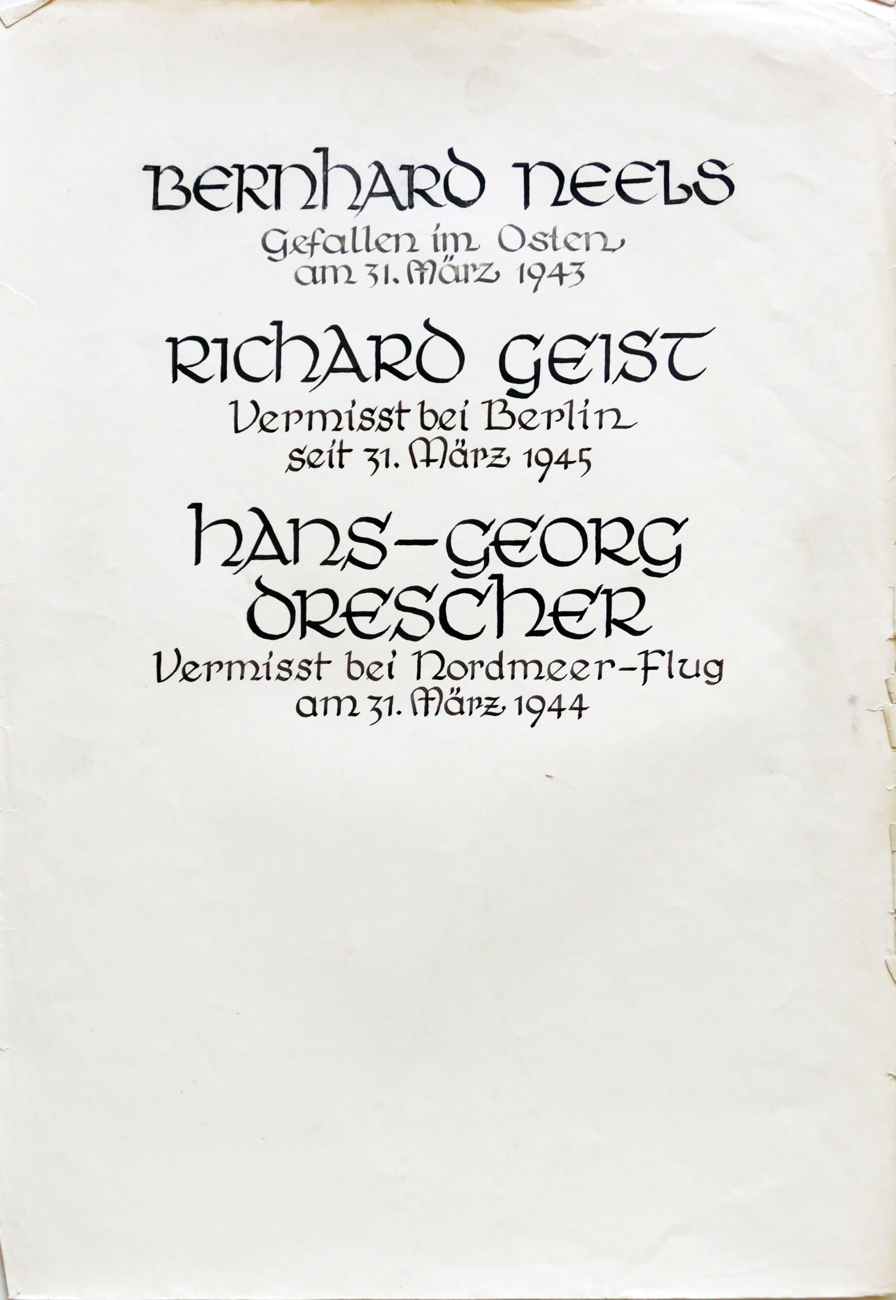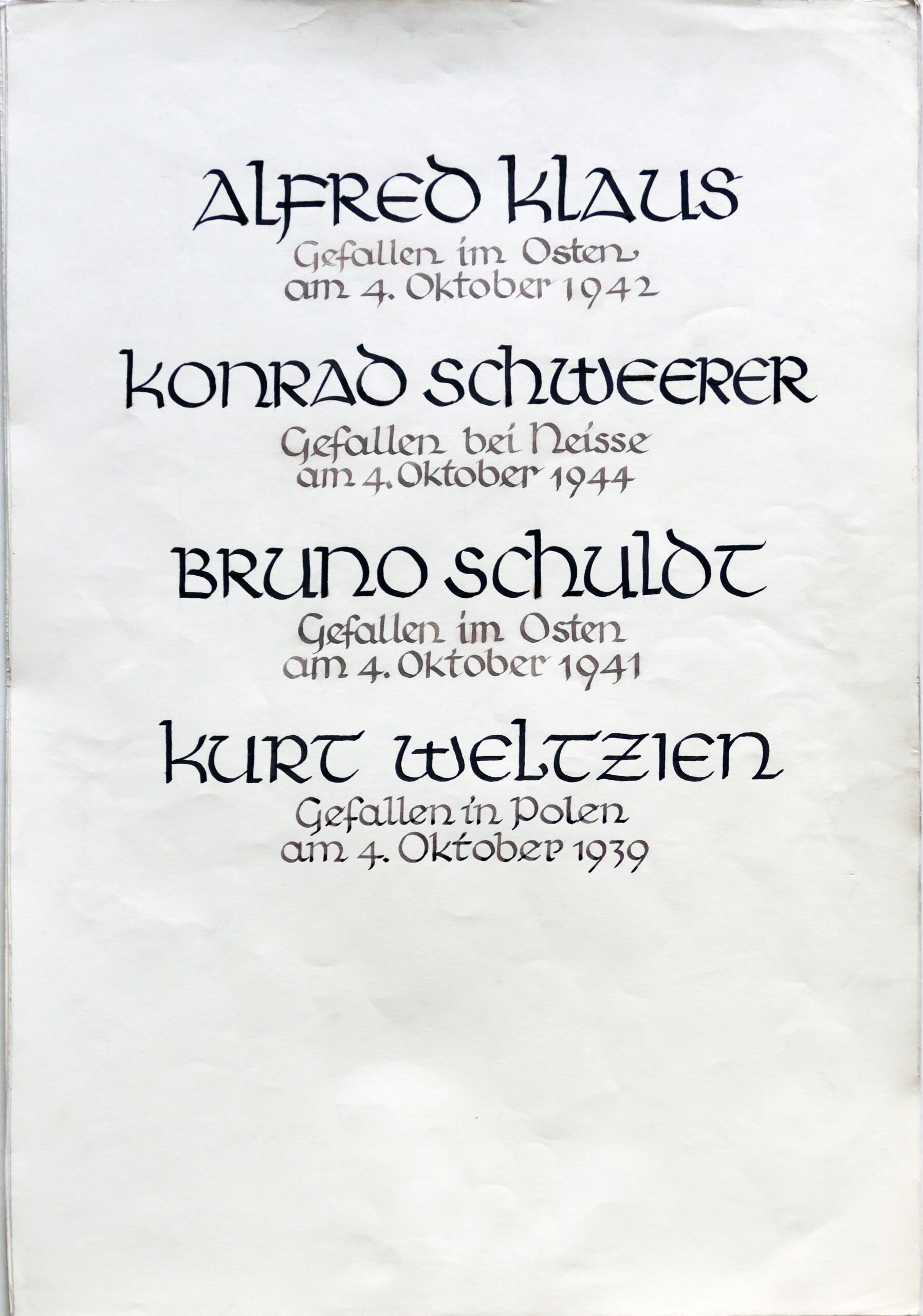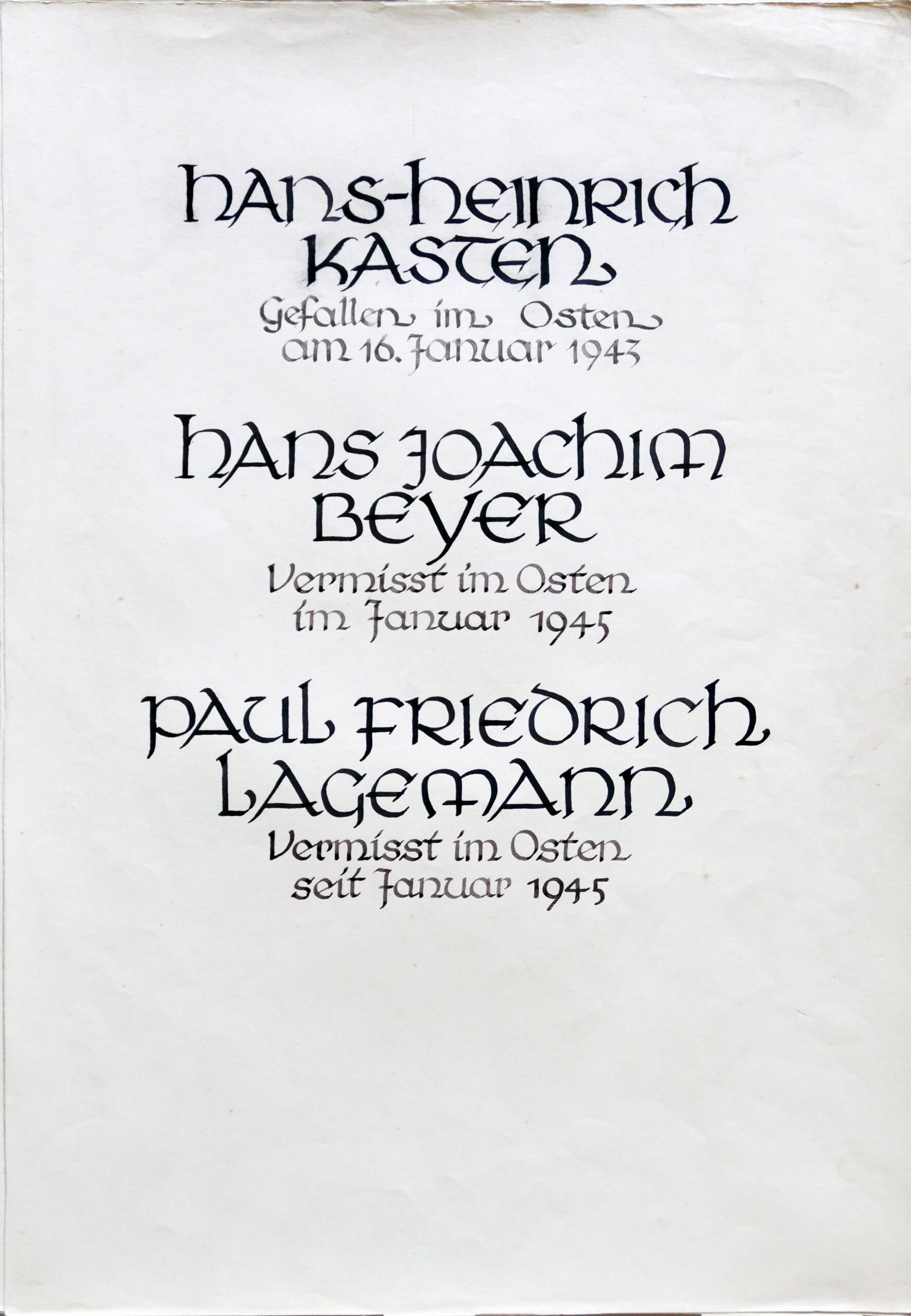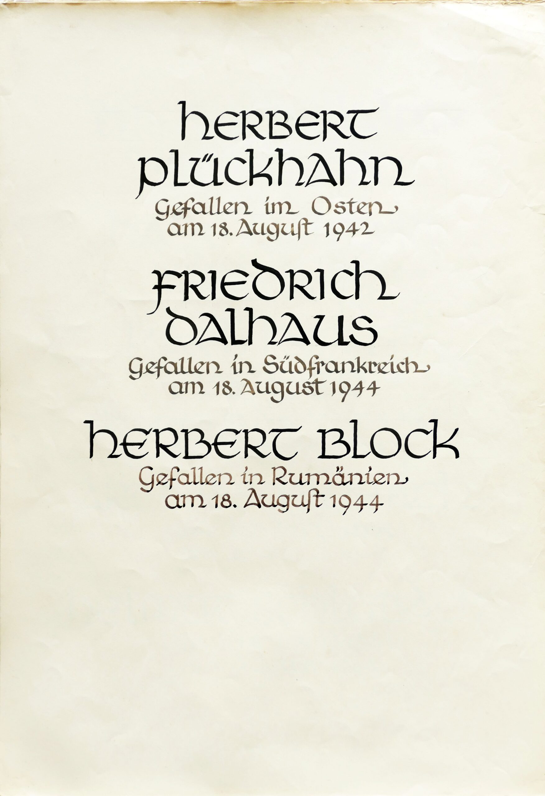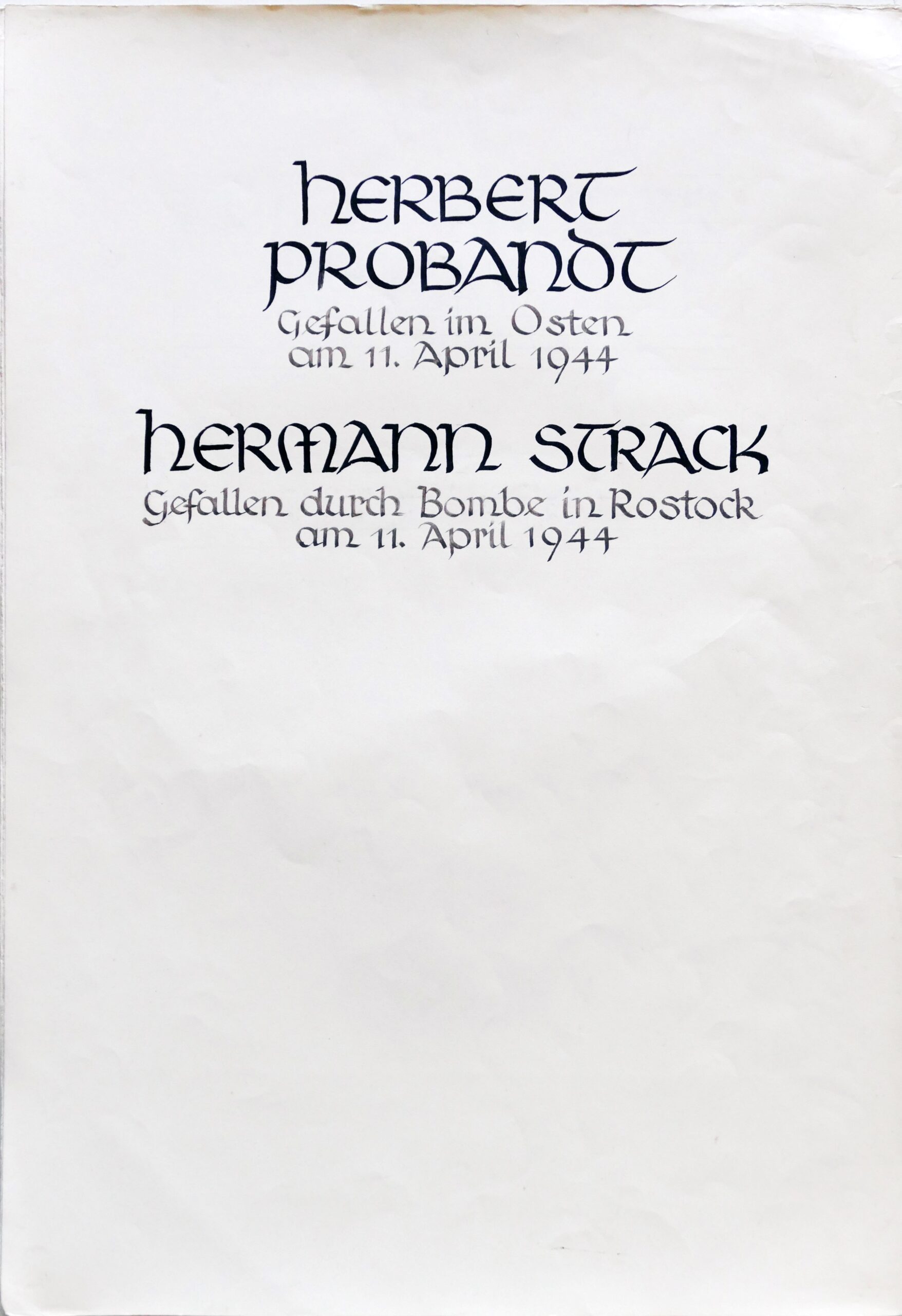Wir denken auch an die Bombenopfer der Kirchgemeinde, an die aus der Gemeinde Verhafteten und Deportierten, die nicht zurückgekehrten und an die Menschen, die in der Zeit an Hunger oder an kriegsbedingten Krankheiten gestorben sind.