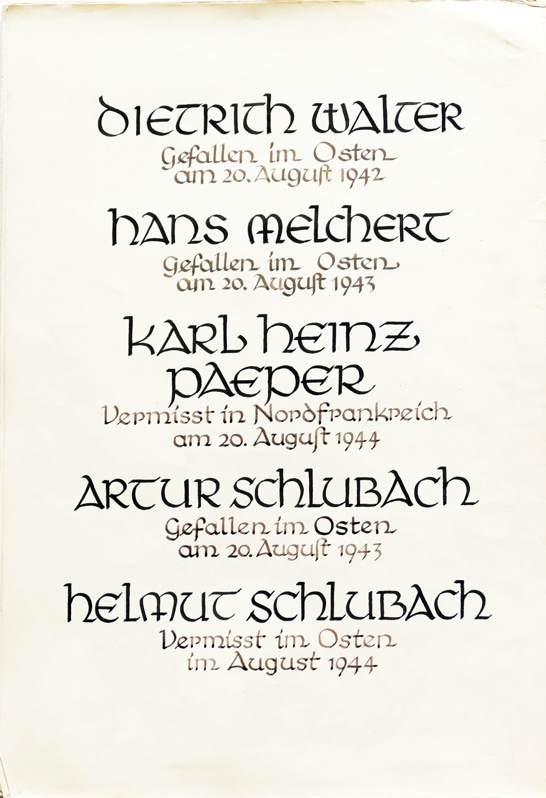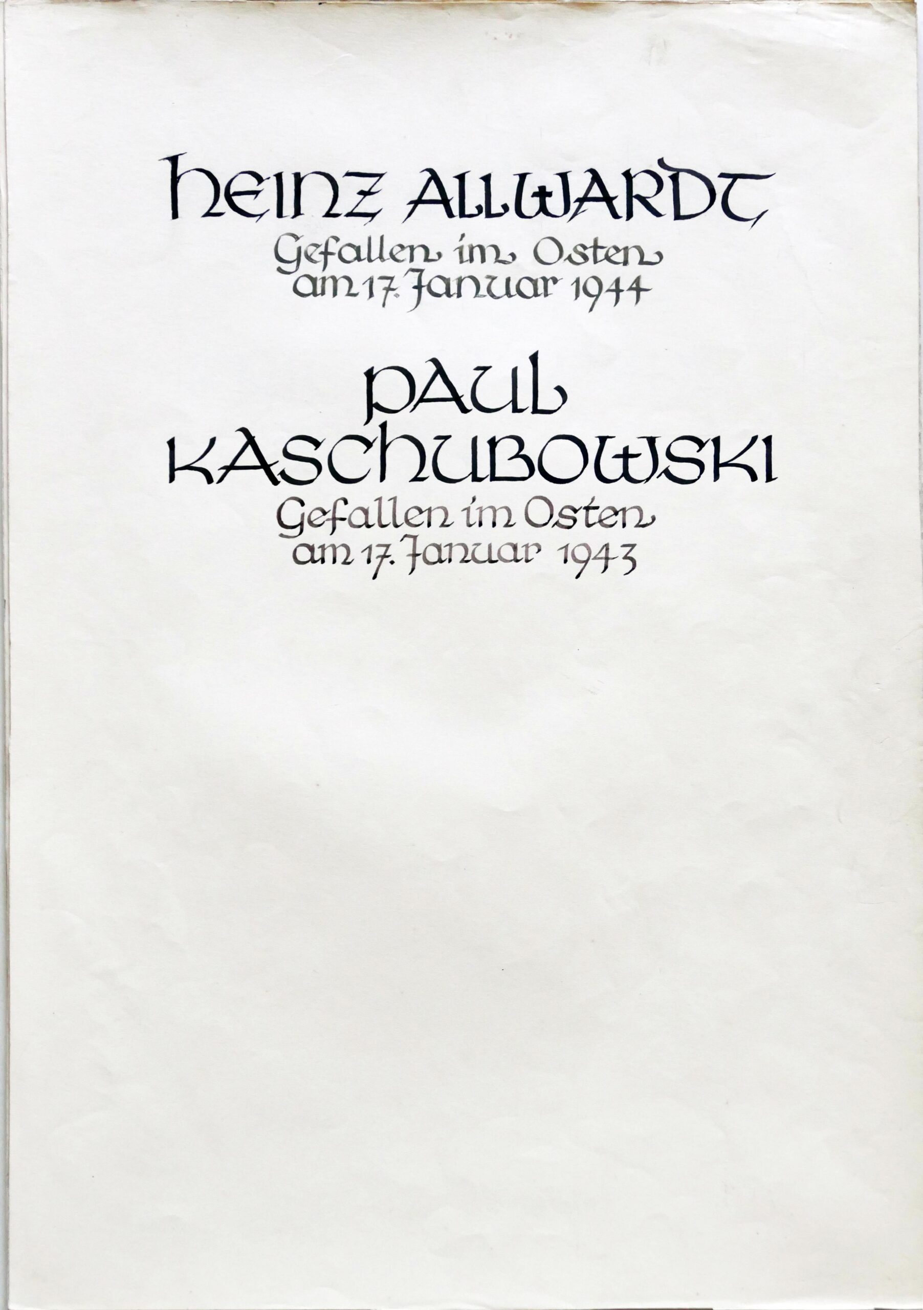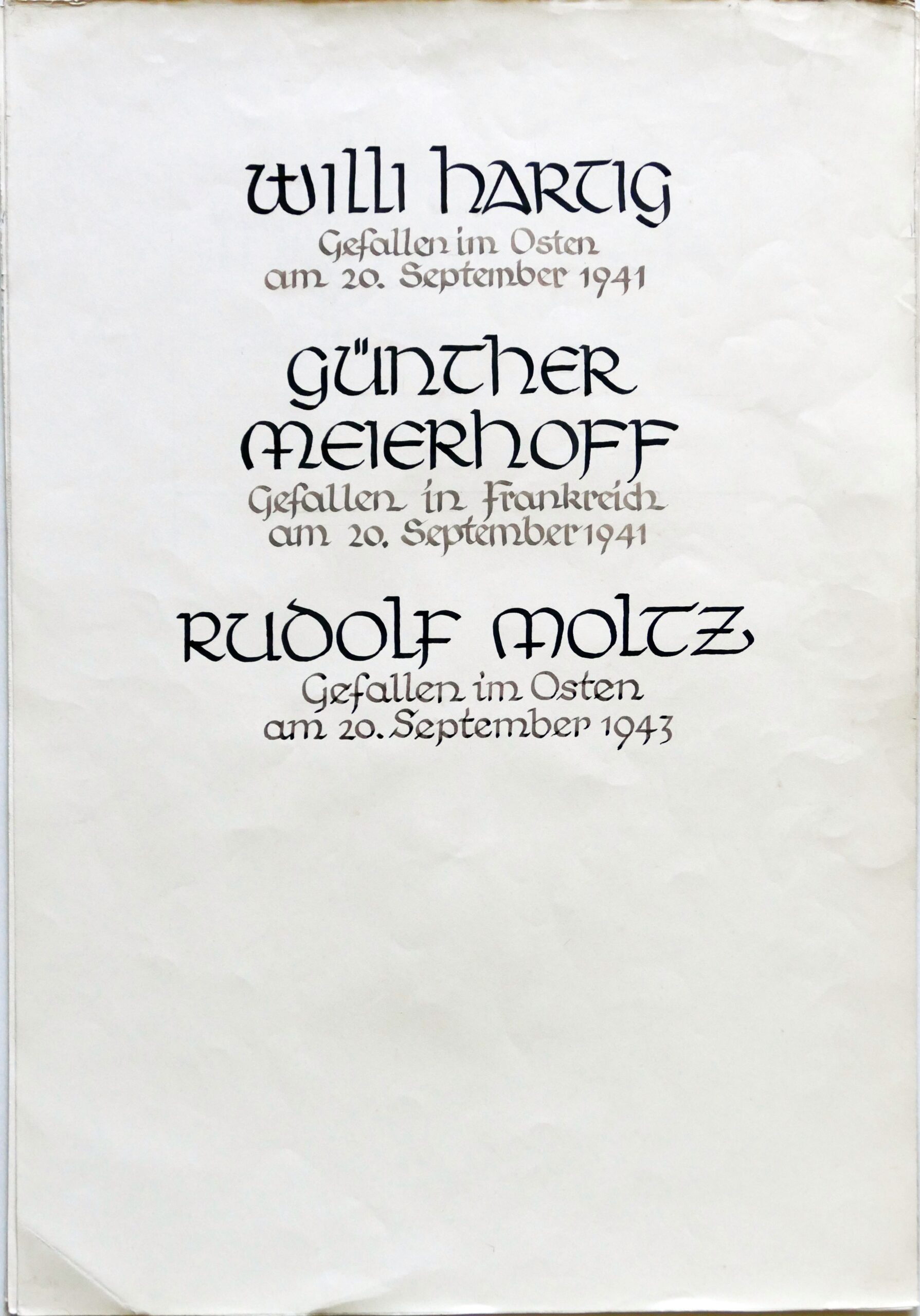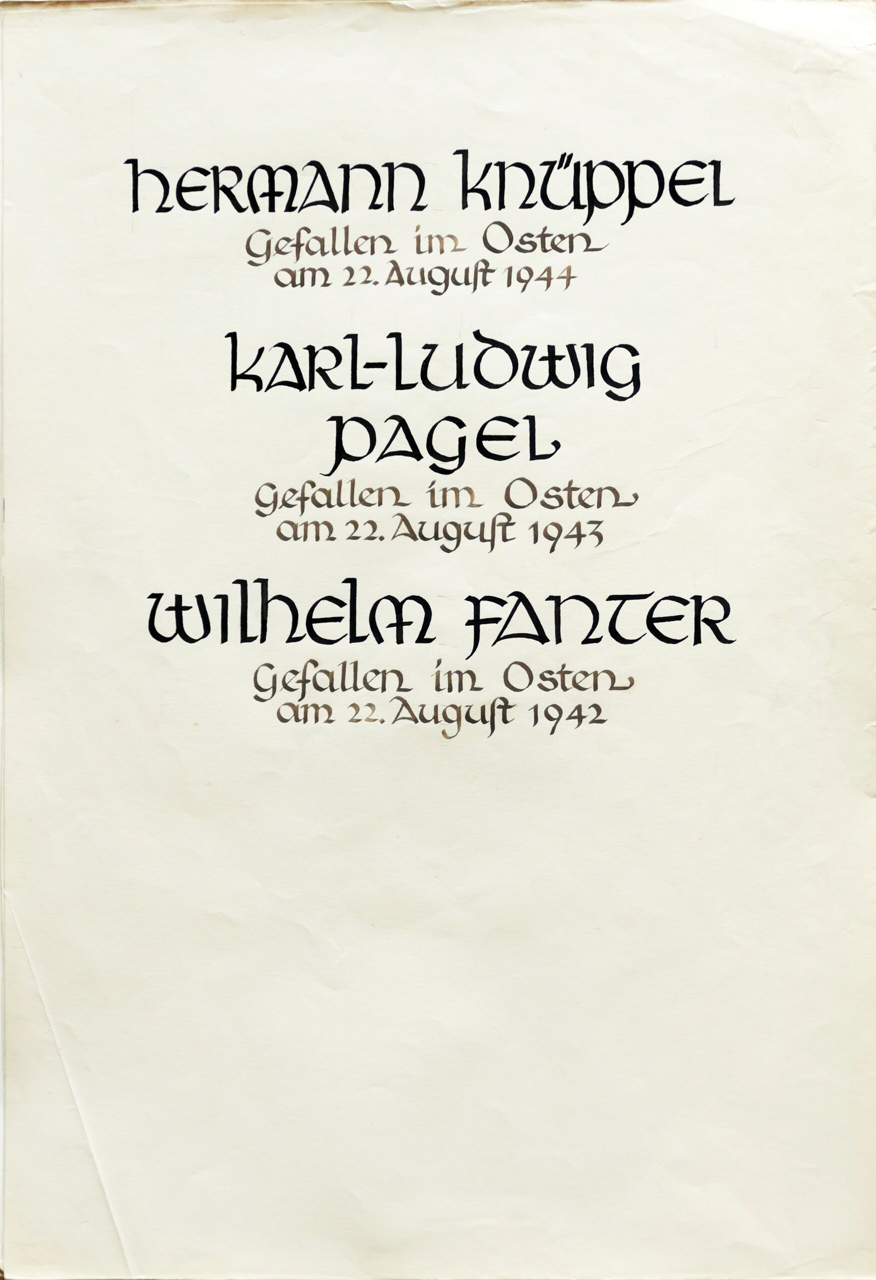 Wir denken auch an die Bombenopfer der Kirchgemeinde, an die aus der Gemeinde Verhafteten und Deportierten, die nicht zurückgekehrten und an die Menschen, die in der Zeit an Hunger oder an kriegsbedingten Krankheiten gestorben sind.