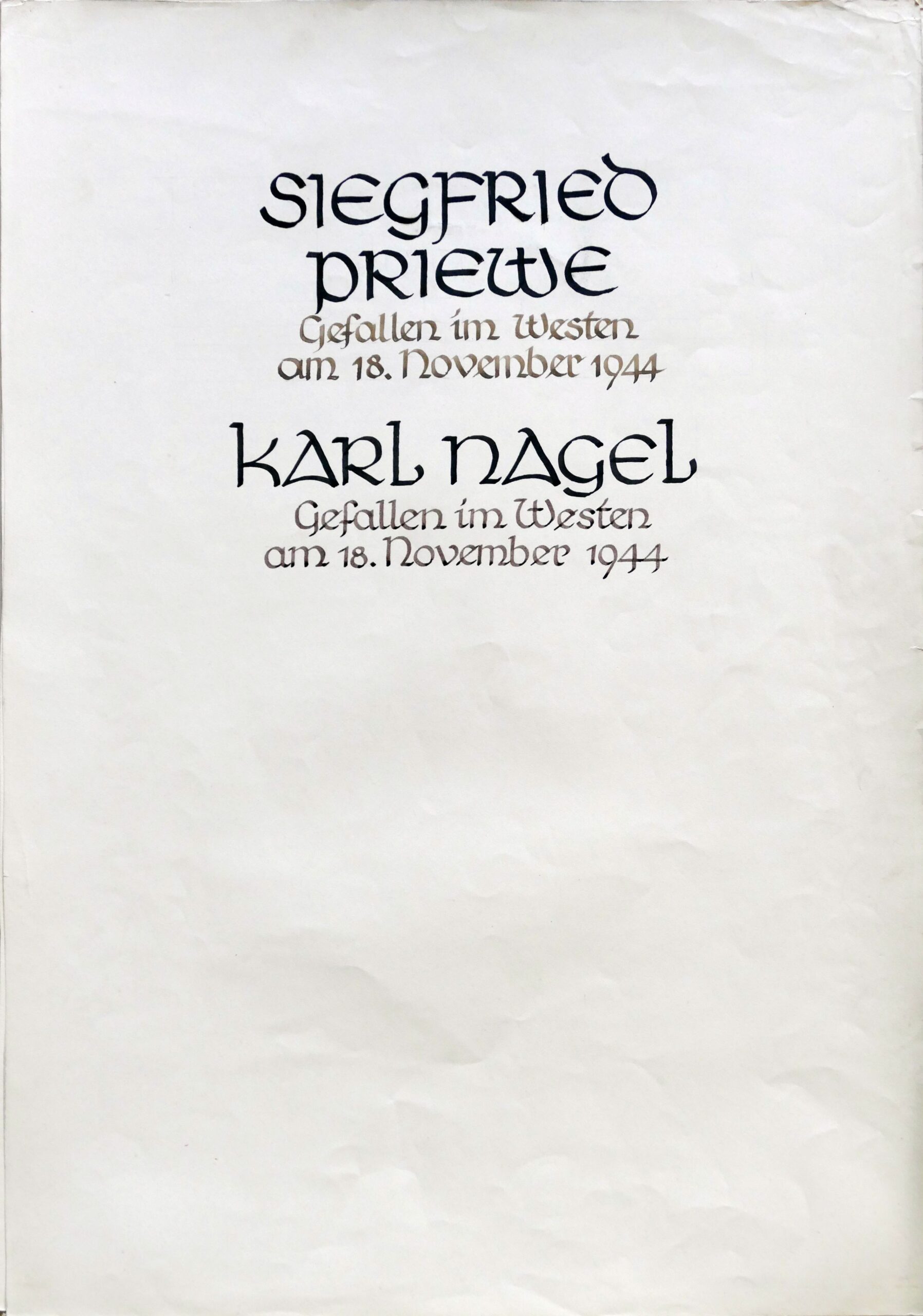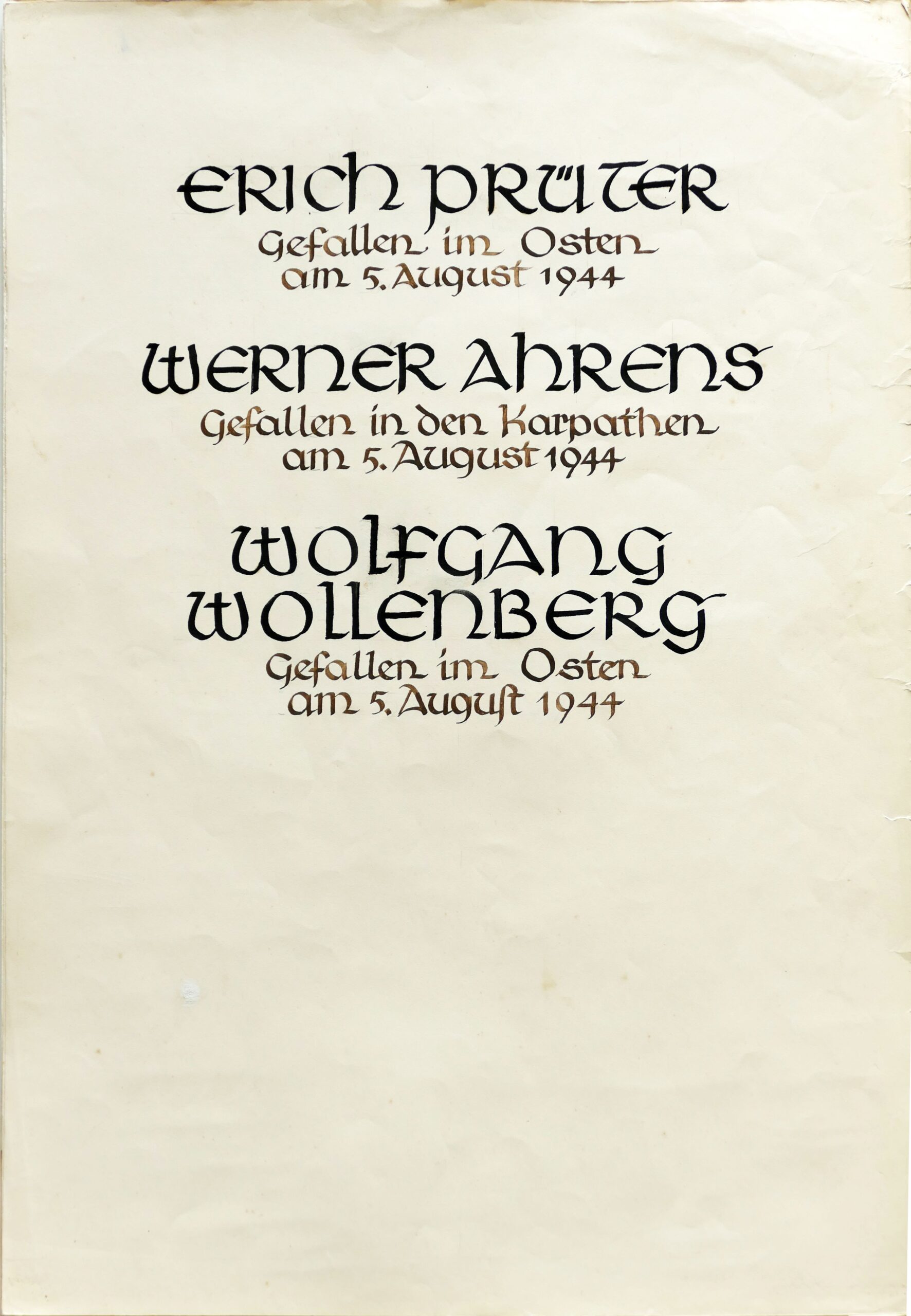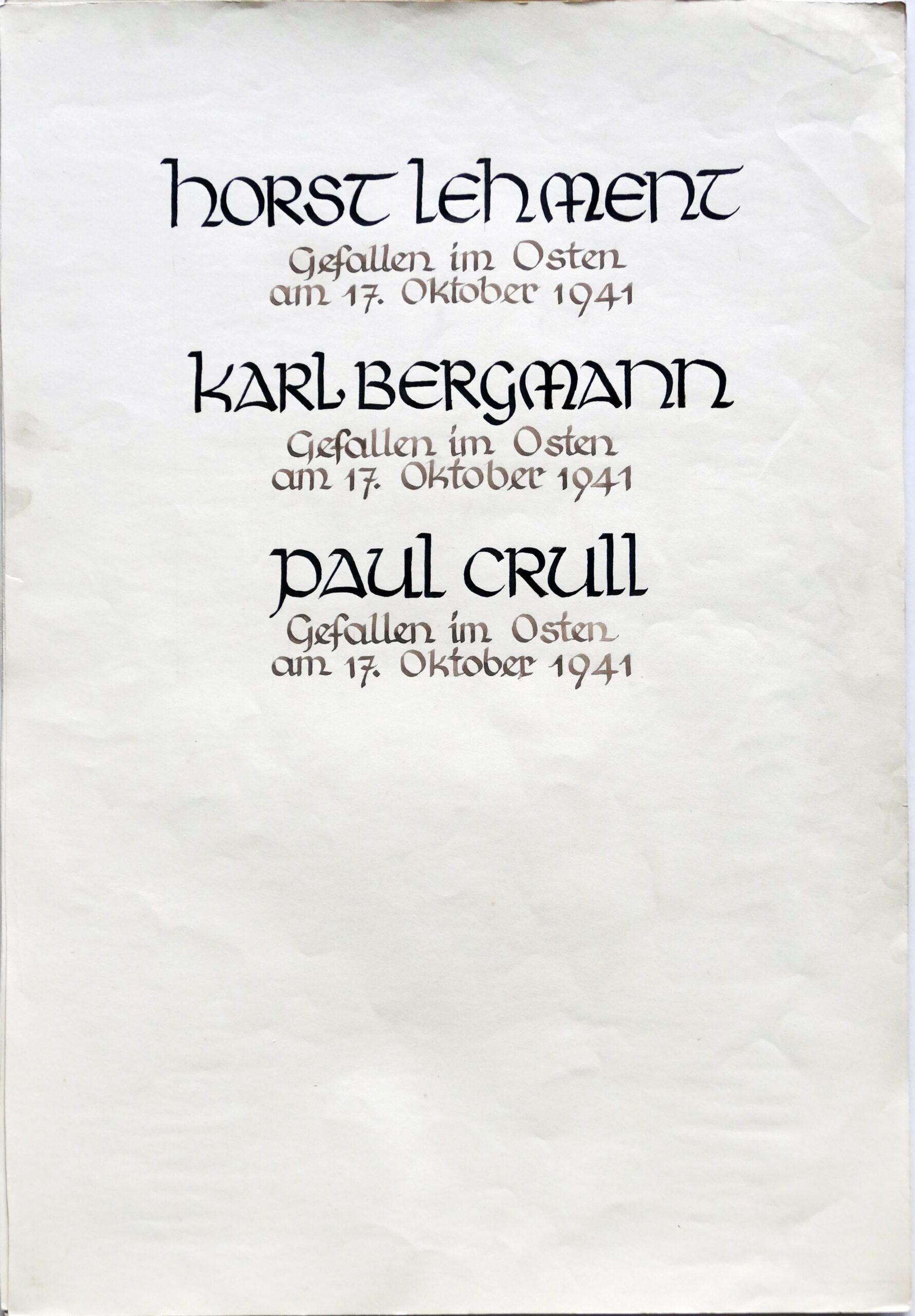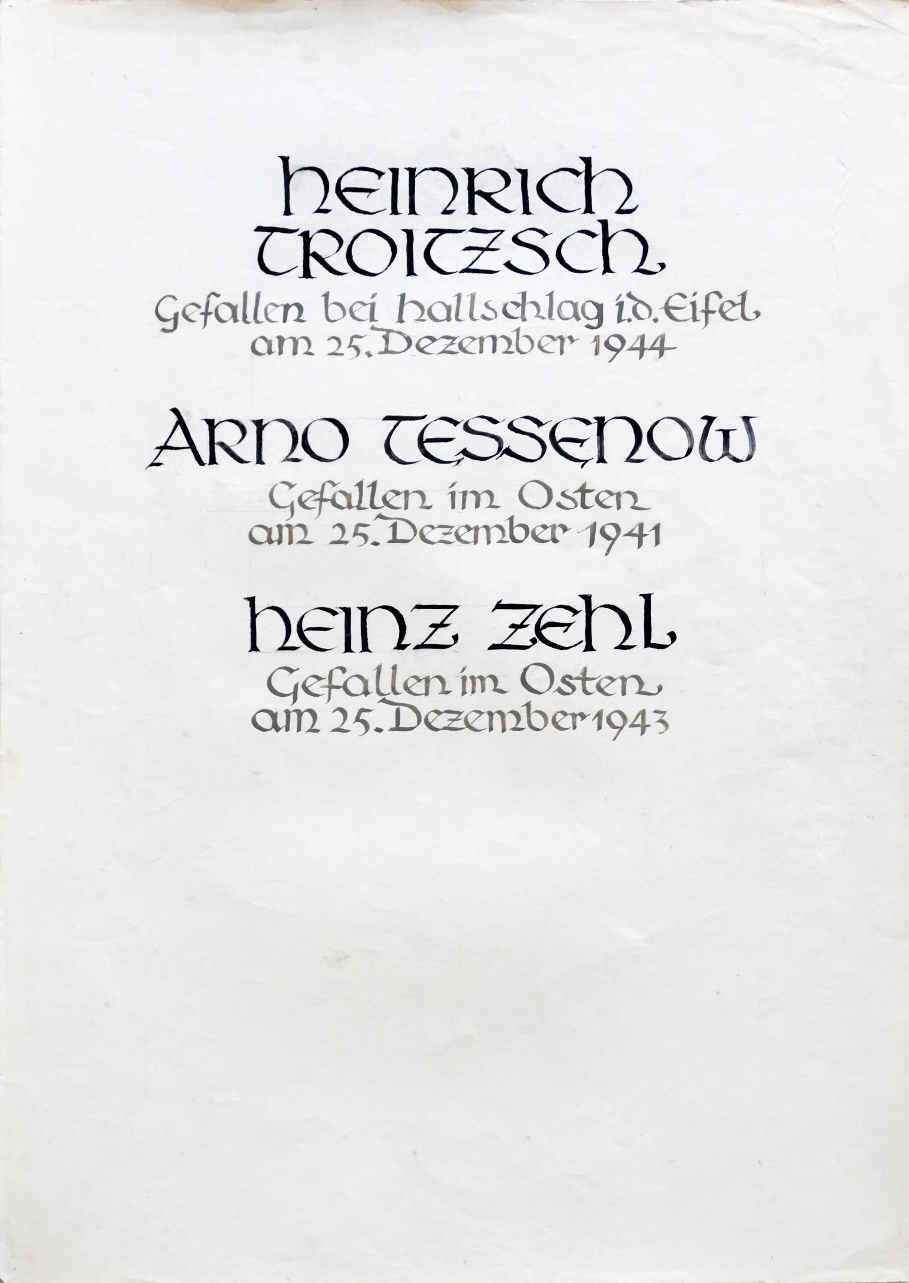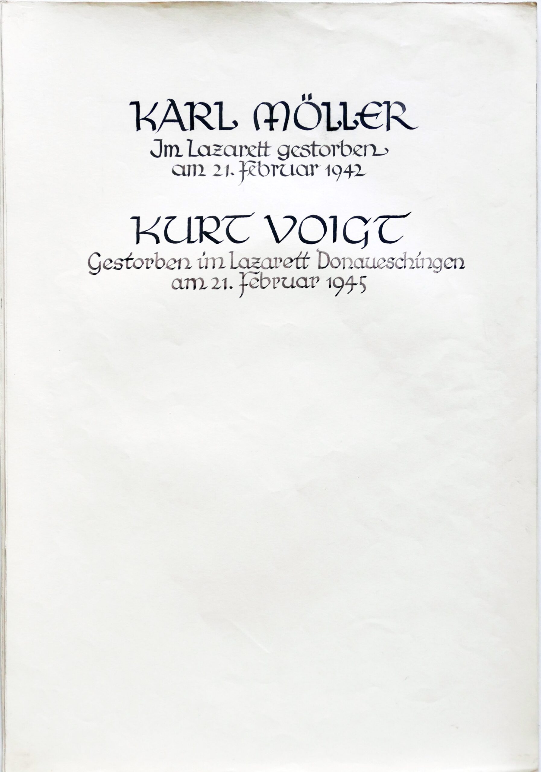 Wir denken auch an die Bombenopfer der Kirchgemeinde, an die aus der Gemeinde Verhafteten und Deportierten, die nicht zurückgekehrten und an die Menschen, die in der Zeit an Hunger oder an kriegsbedingten Krankheiten gestorben sind.