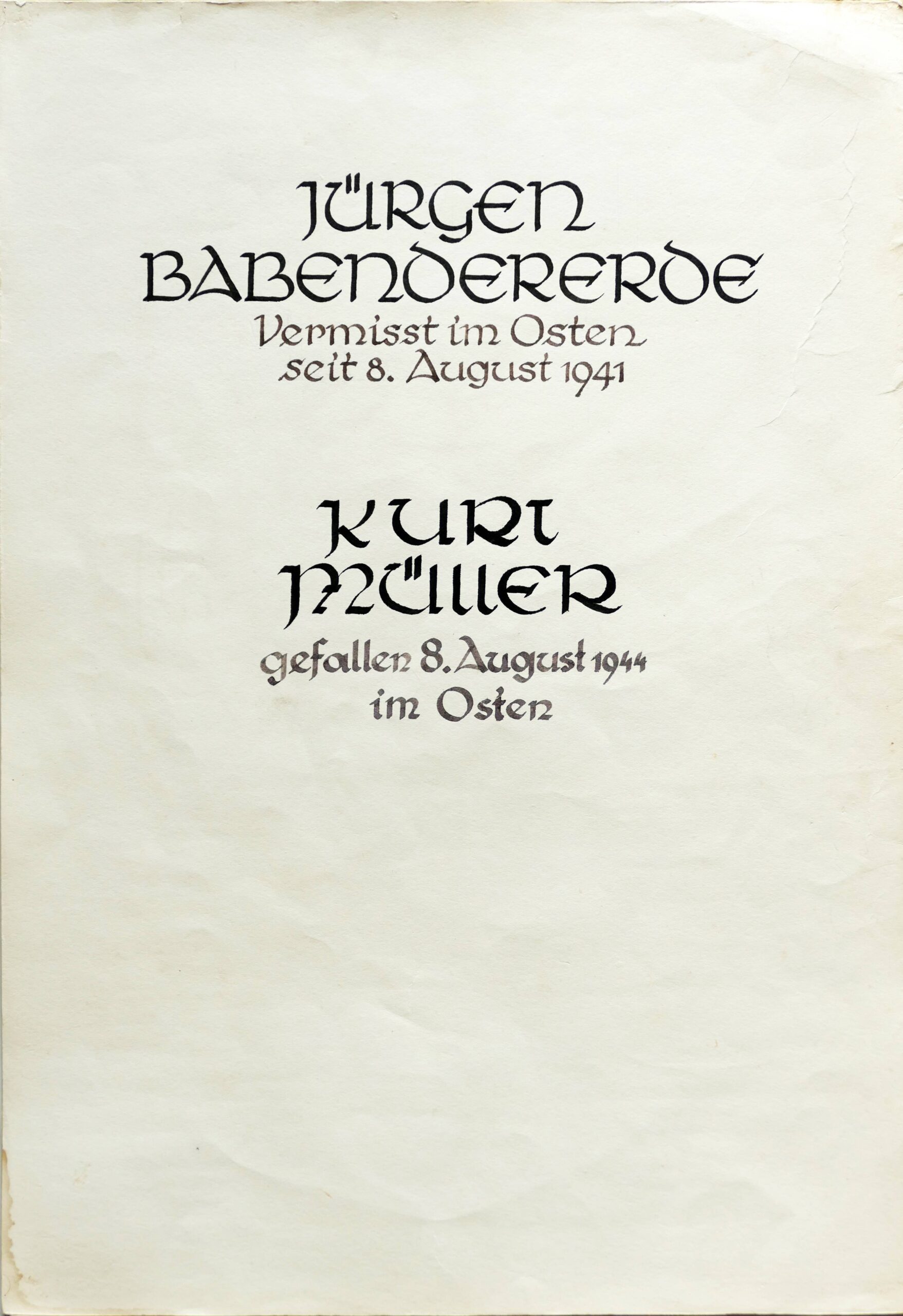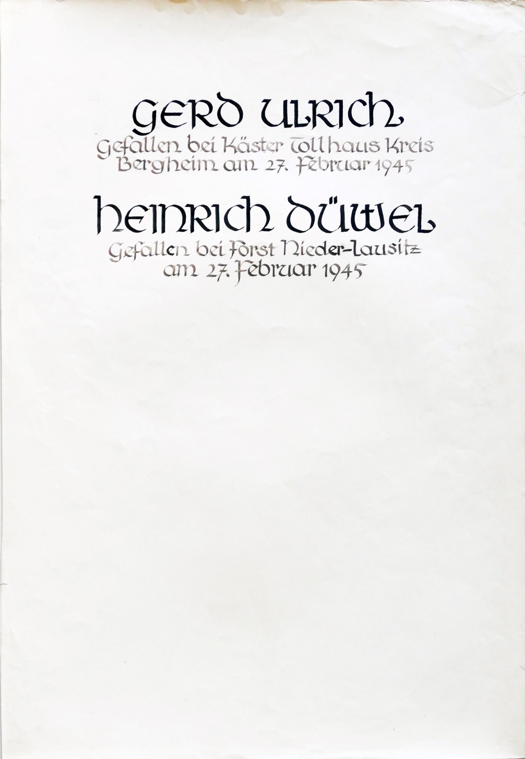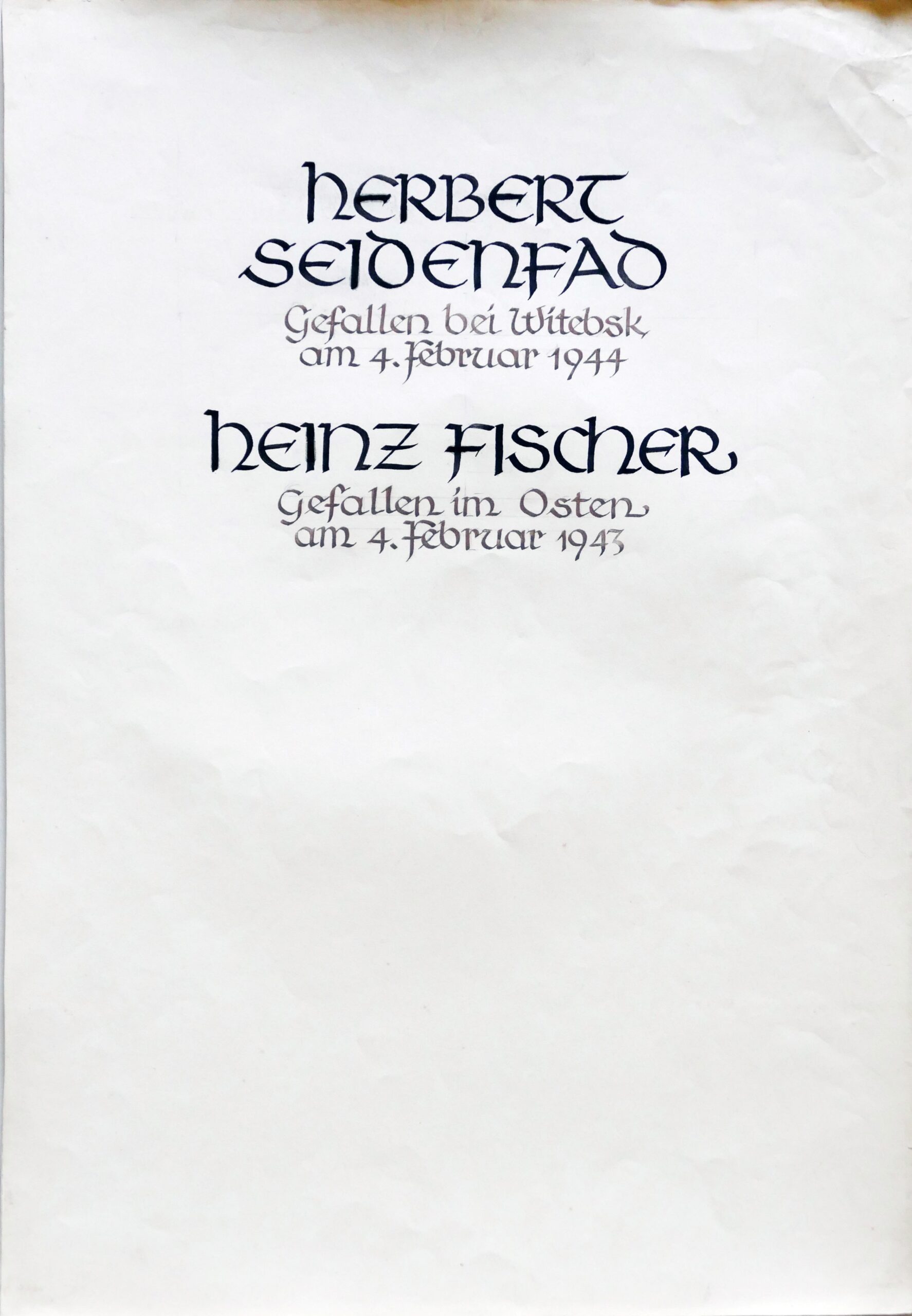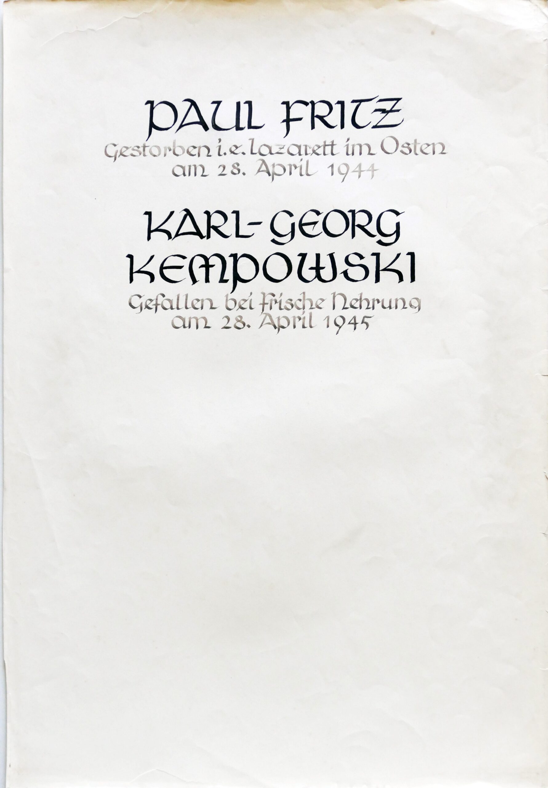 Wir denken auch an die Bombenopfer der Kirchgemeinde, an die aus der Gemeinde Verhafteten und Deportierten, die nicht zurückgekehrten und an die Menschen, die in der Zeit an Hunger oder an kriegsbedingten Krankheiten gestorben sind.